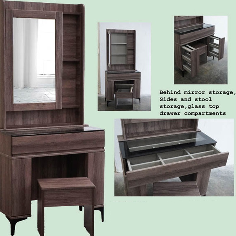 -Dressing table with storage stool