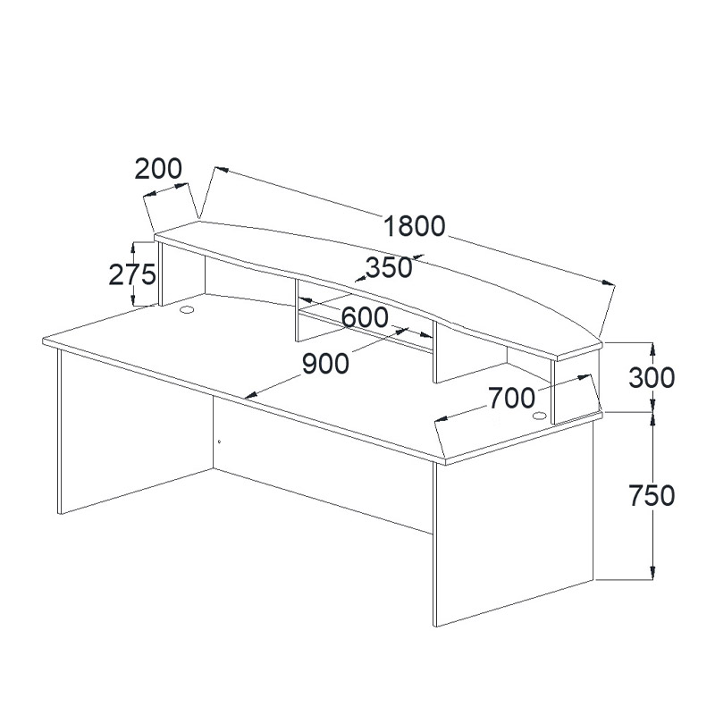 -2 x 60mm diameter grommet wire holes for easy cable management on table top