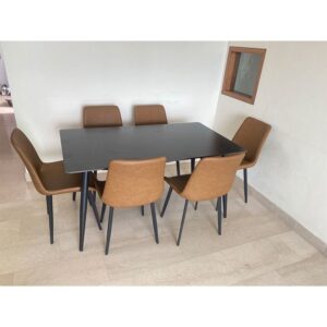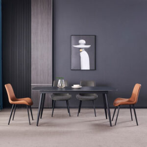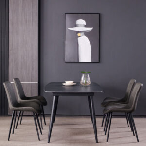 -Matt sintered stone top dining table with metal leg