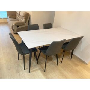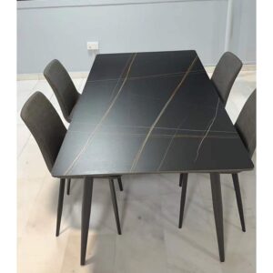 This stunning Sintered Stone table top with Rishi metal base features a modern minimalist design. The sleek table base design ensures all diners get ample legroom space with minimal obstacles in their way.