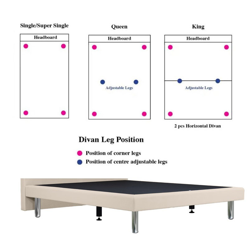 -7inch stainless leg + 2pc adjustable center metal leg support for queen & king