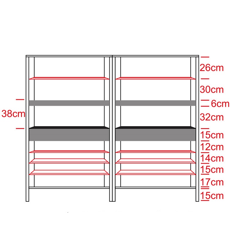 -Internal with two fix shelf and removable shelf (drawing in red)